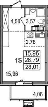 2-к квартира 26 м² на 3 этаже 18 этажного дома