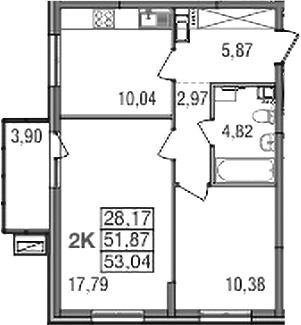 2-к квартира 51 м² на 12 этаже 16 этажного дома